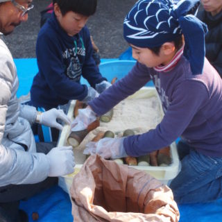 いぶりがっこの樽上げ